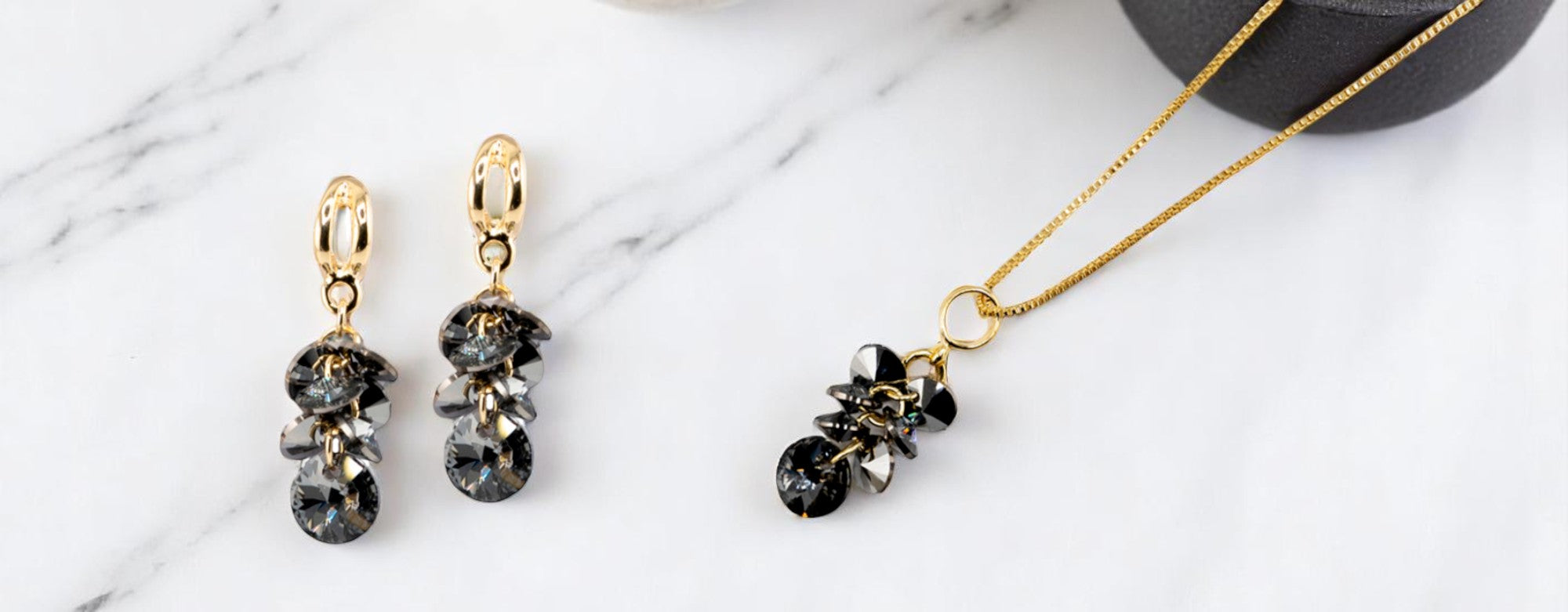 Conjunto Serena Gold Baño de Oro 24k y Cristales Silver Night