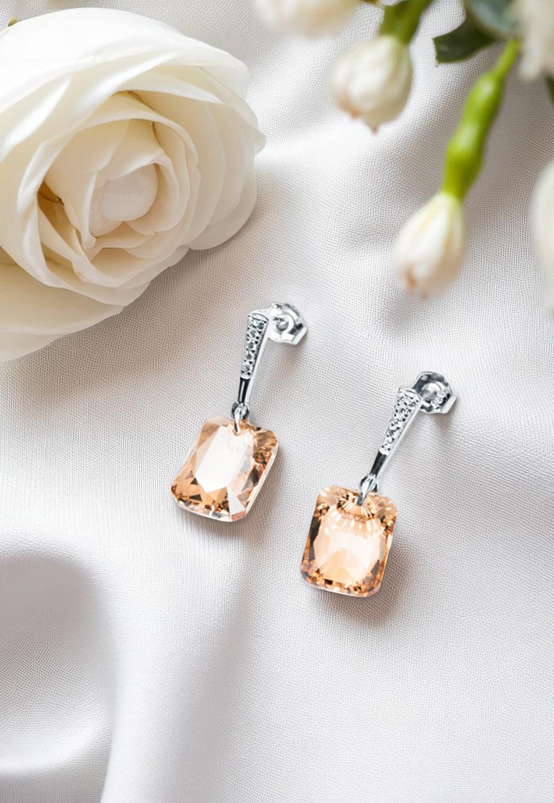 Aros Estefanía Plata 925 Cristal Genuino Golden Shadow