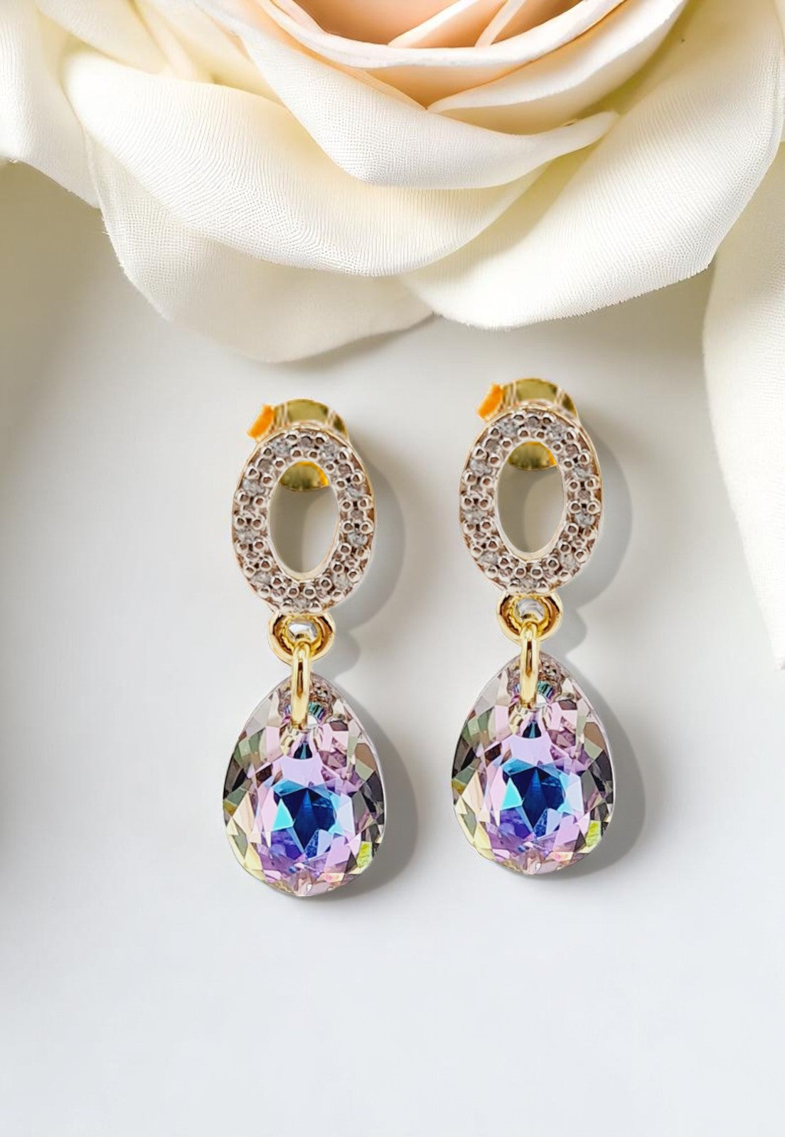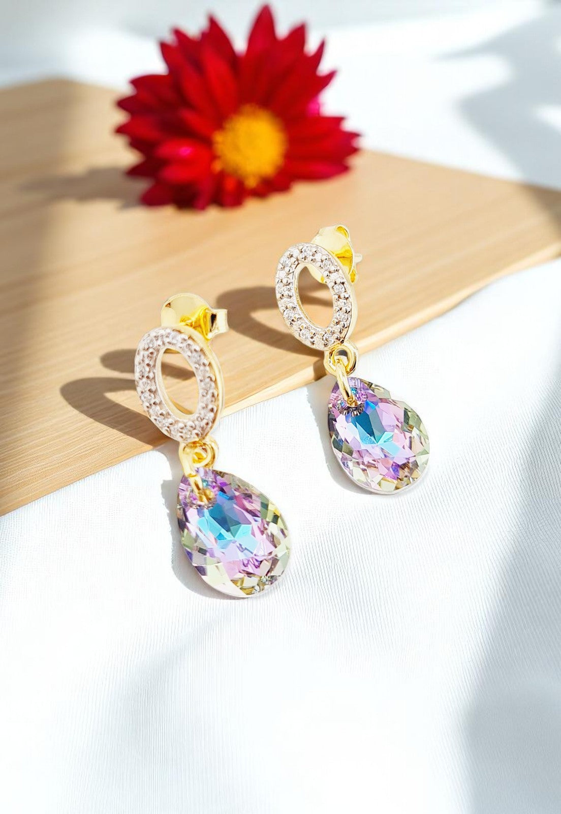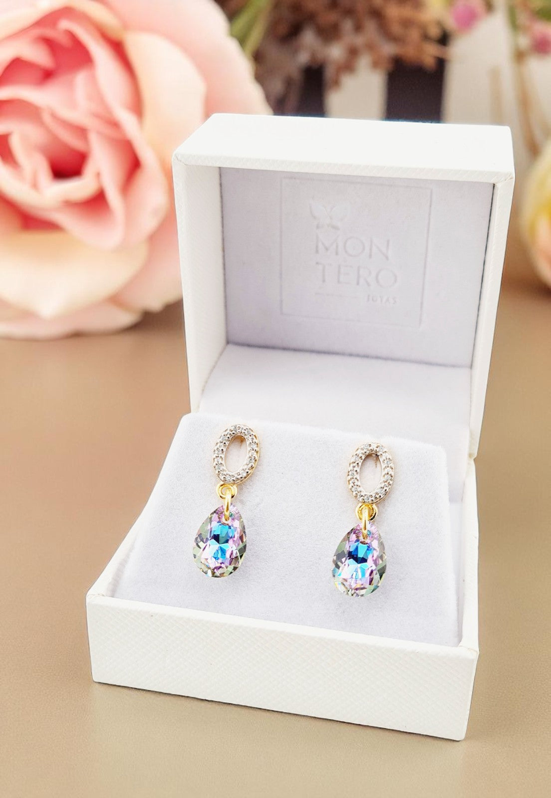 Aros Gota de Luz Gold 24k Cristal Genuino Vitral Ligth