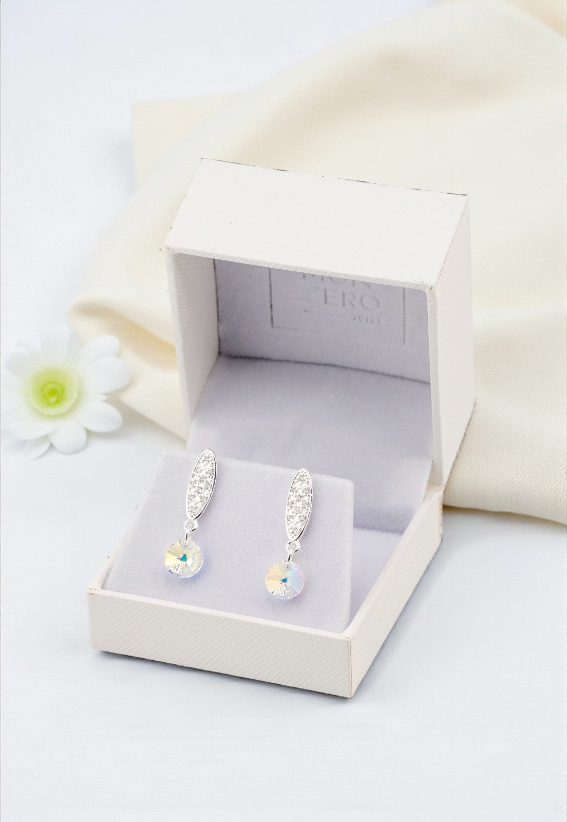 Aros Punto de Luz Baño de Oro Blanco Cristales Aurora Boreal