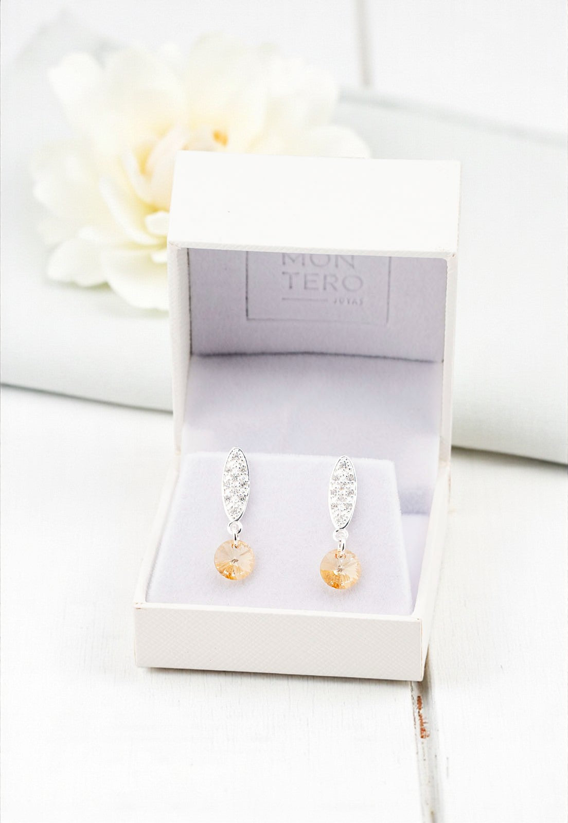 Aros Punto de Luz Baño de Oro Blanco Cristales Golden Shadow