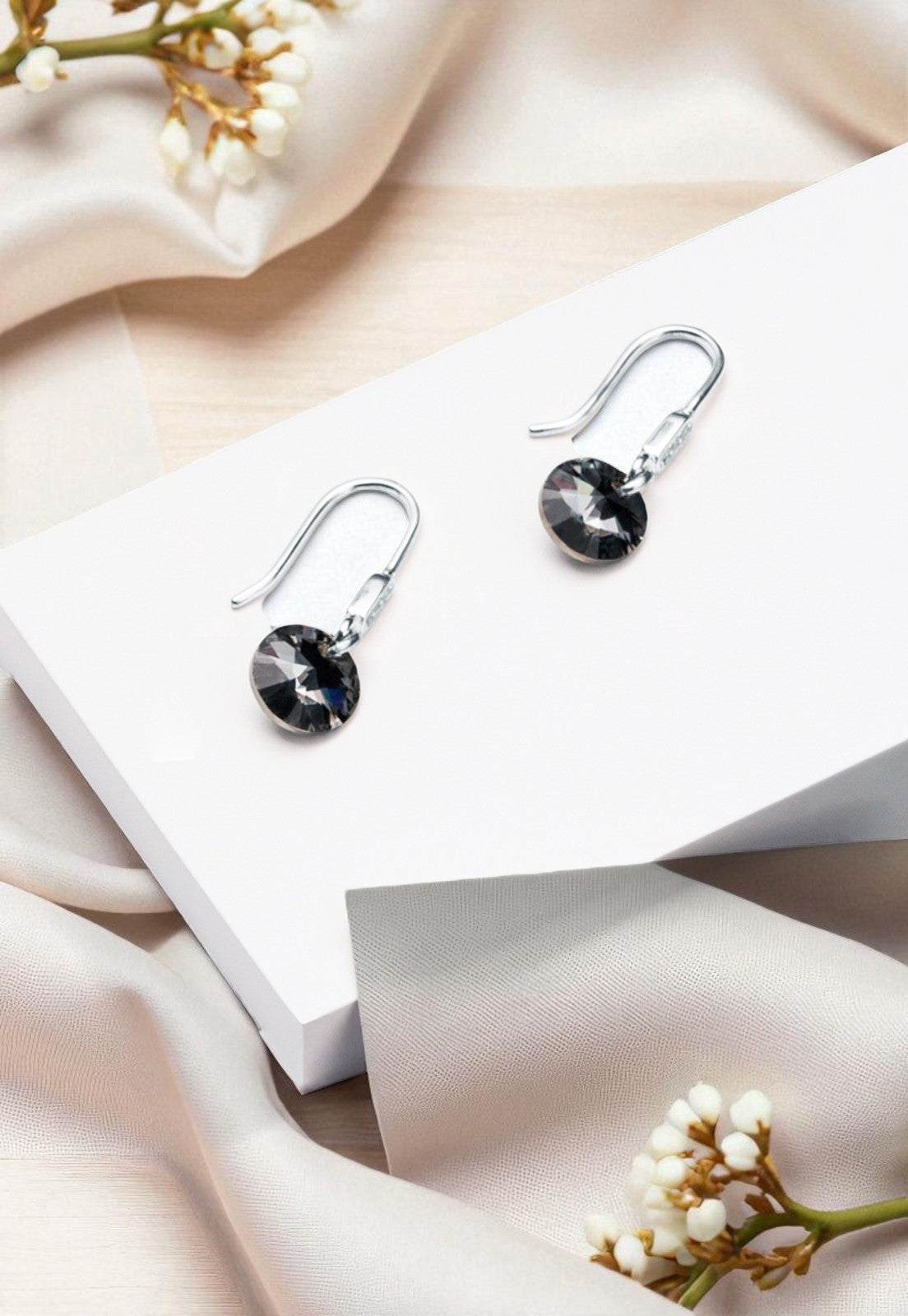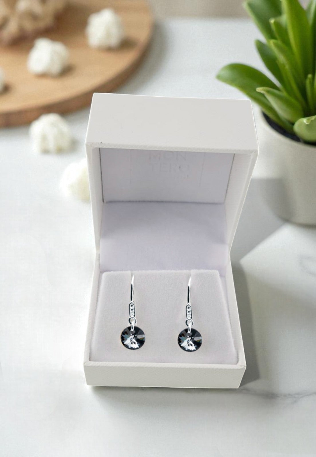 Aros Punto De Luz Circón Plata 925 Cristal Genuino Silver Night