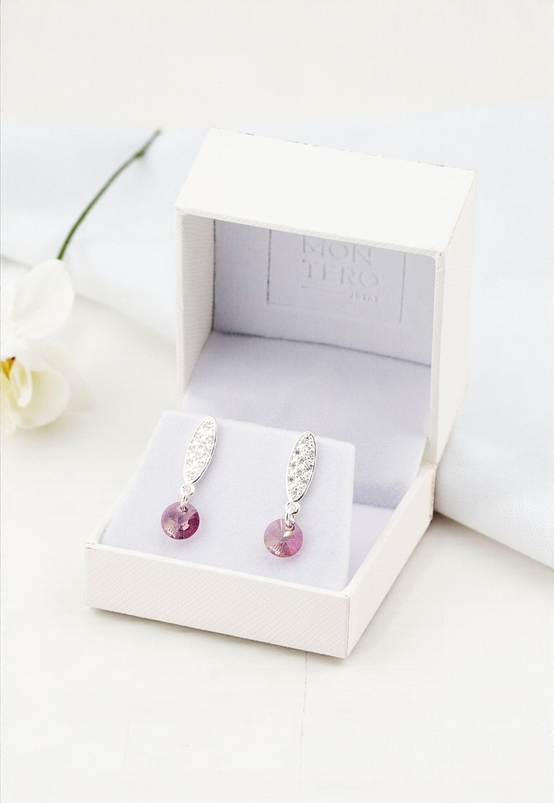 Aros Punto De Luz Con Baño de Oro Blanco Cristal Genuino Antique Pink