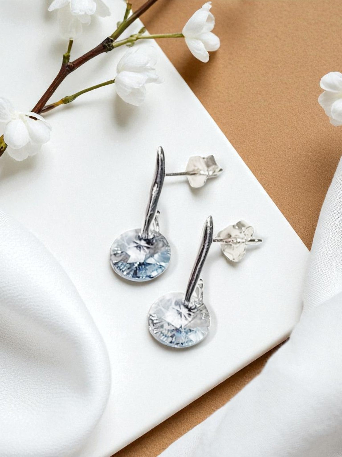 Aros Punto De Luz Plata 925 Cristal Genuino Blue Shade