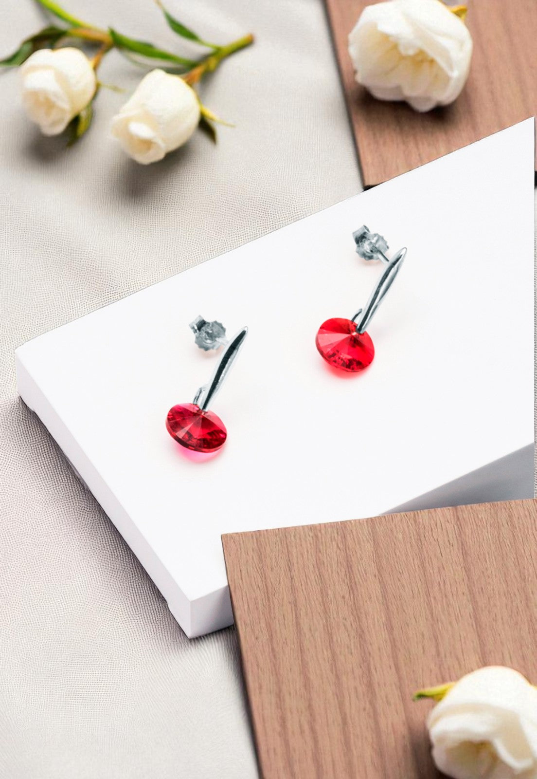 Aros Punto De Luz Plata 925 Cristal Genuino Scarlet