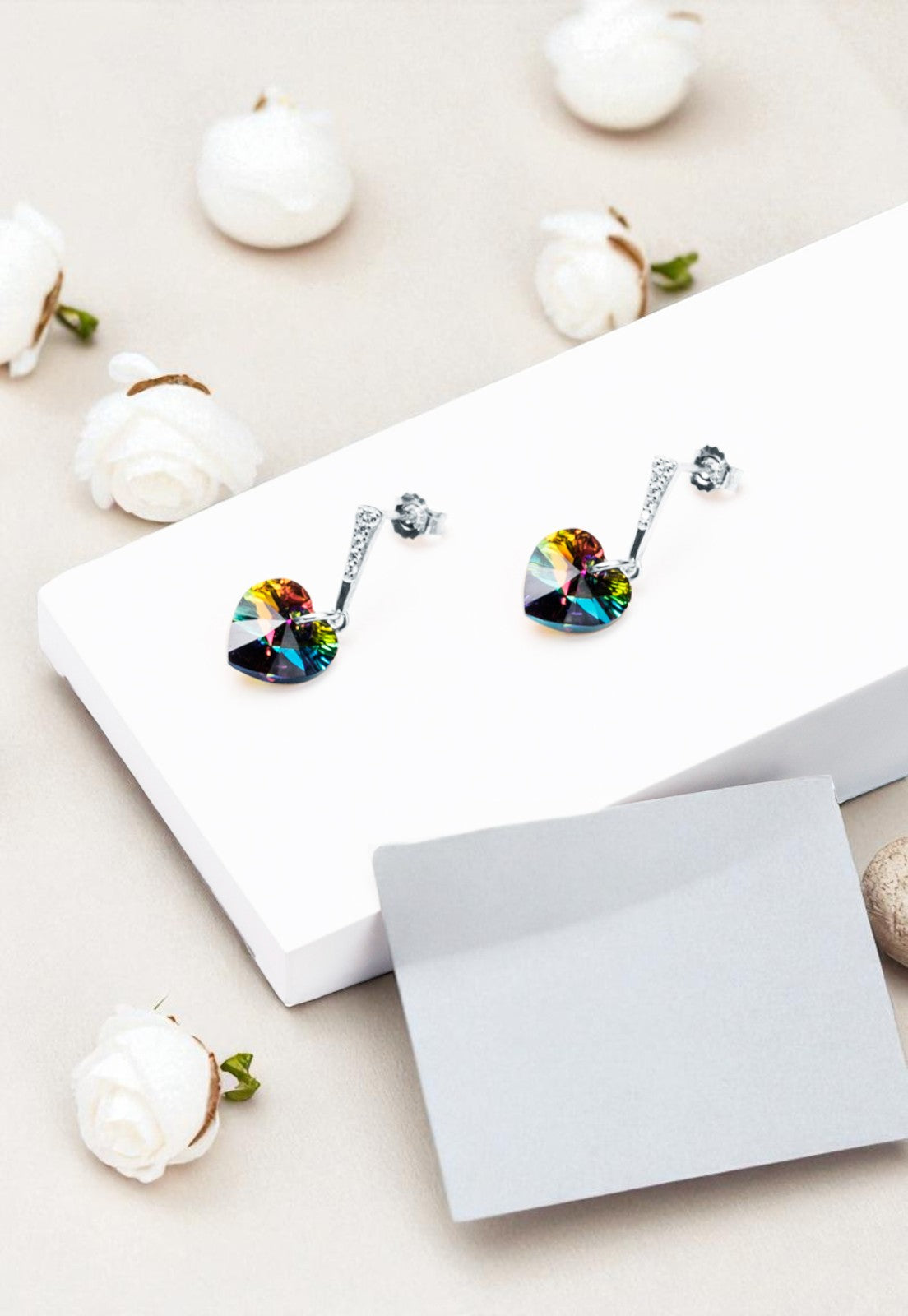 Aros Romance Plata Italiana 925 Cristal Genuino Vitral Medium