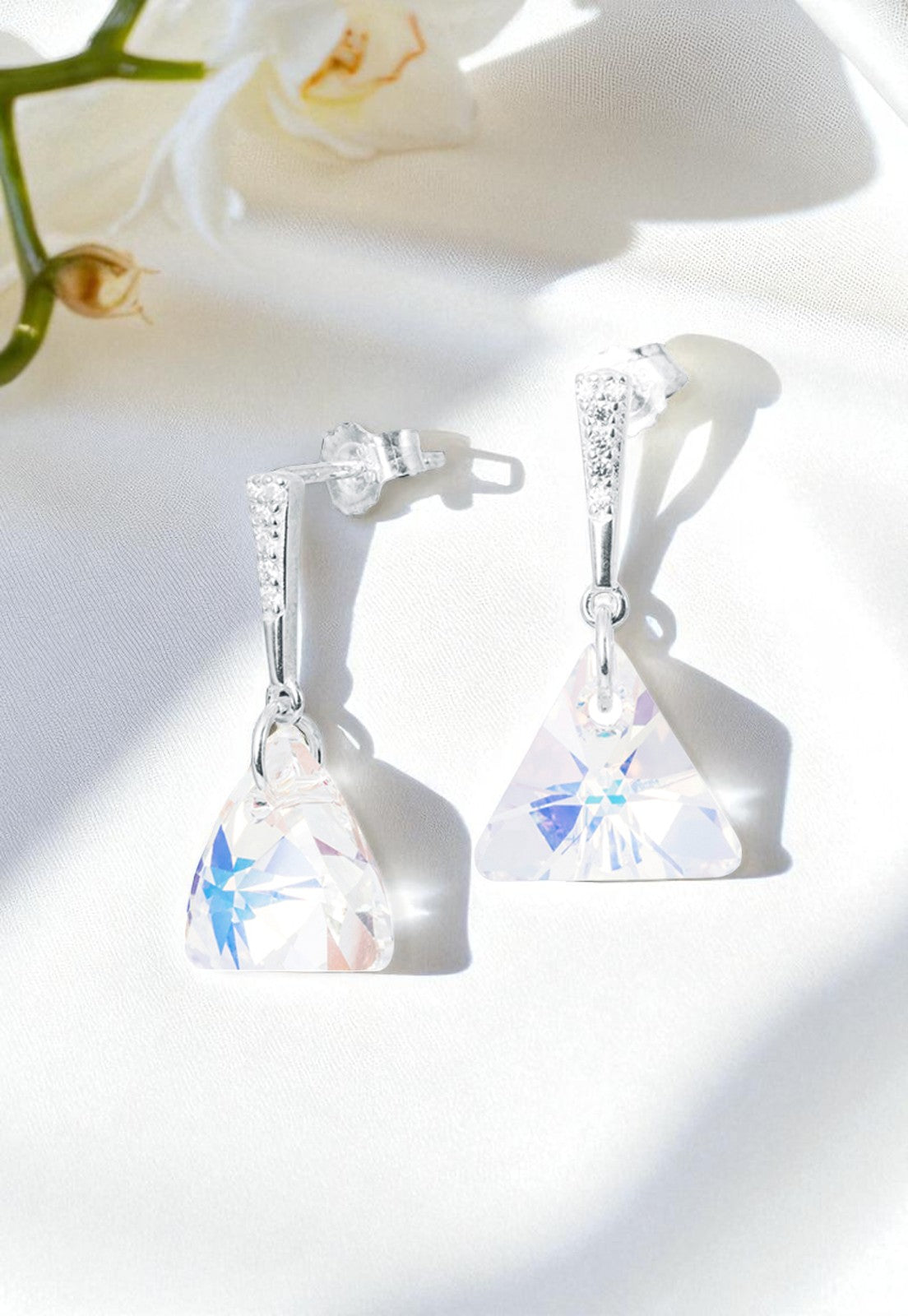 Aros Trinidad Plata 925 Cristal Genuino Aurora Boreal