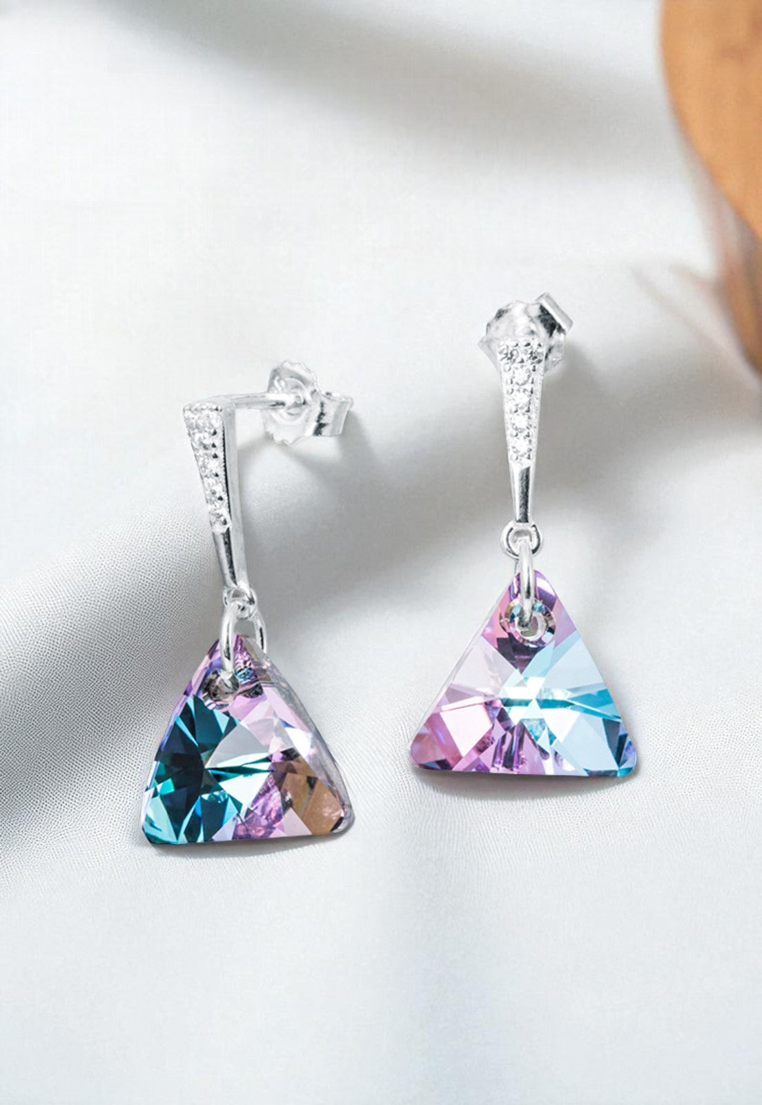 Aros Trinidad Plata 925 Cristal Genuino Vitral Light