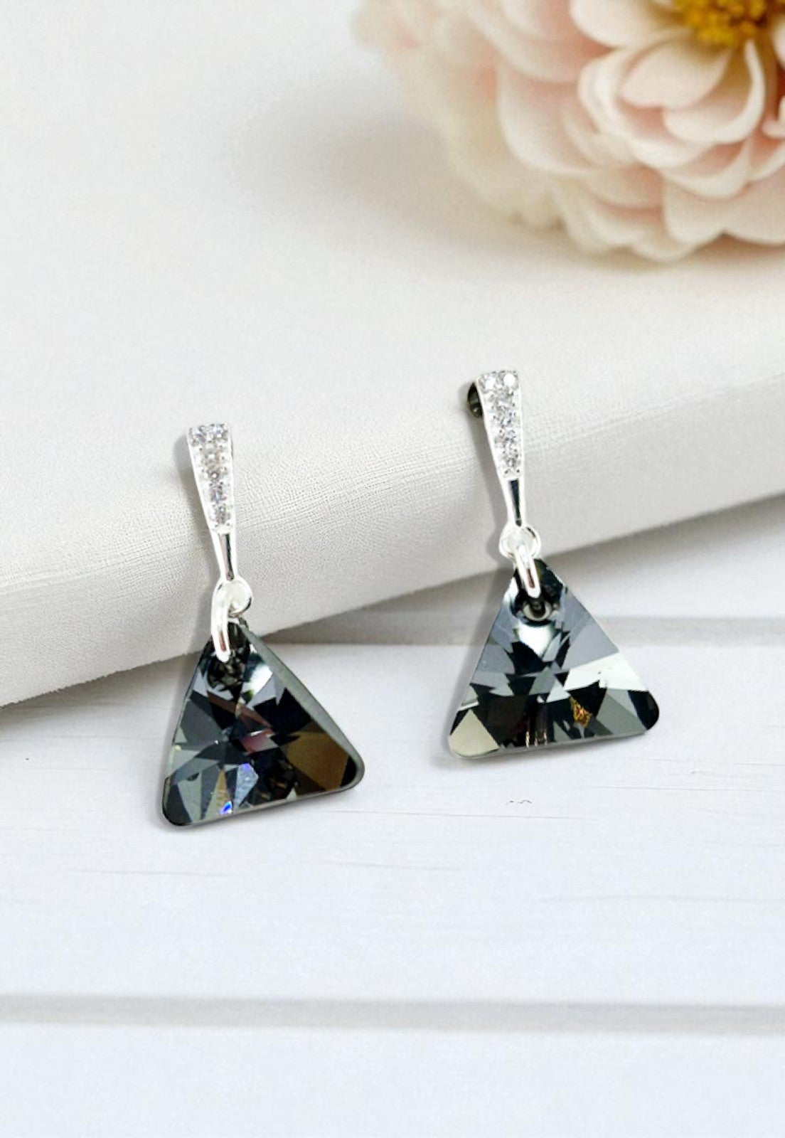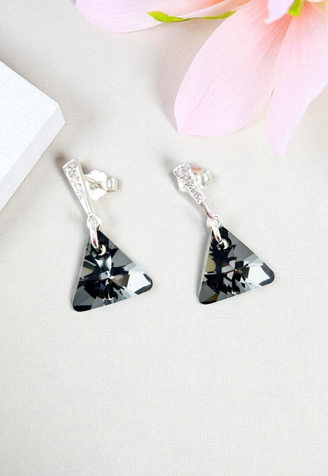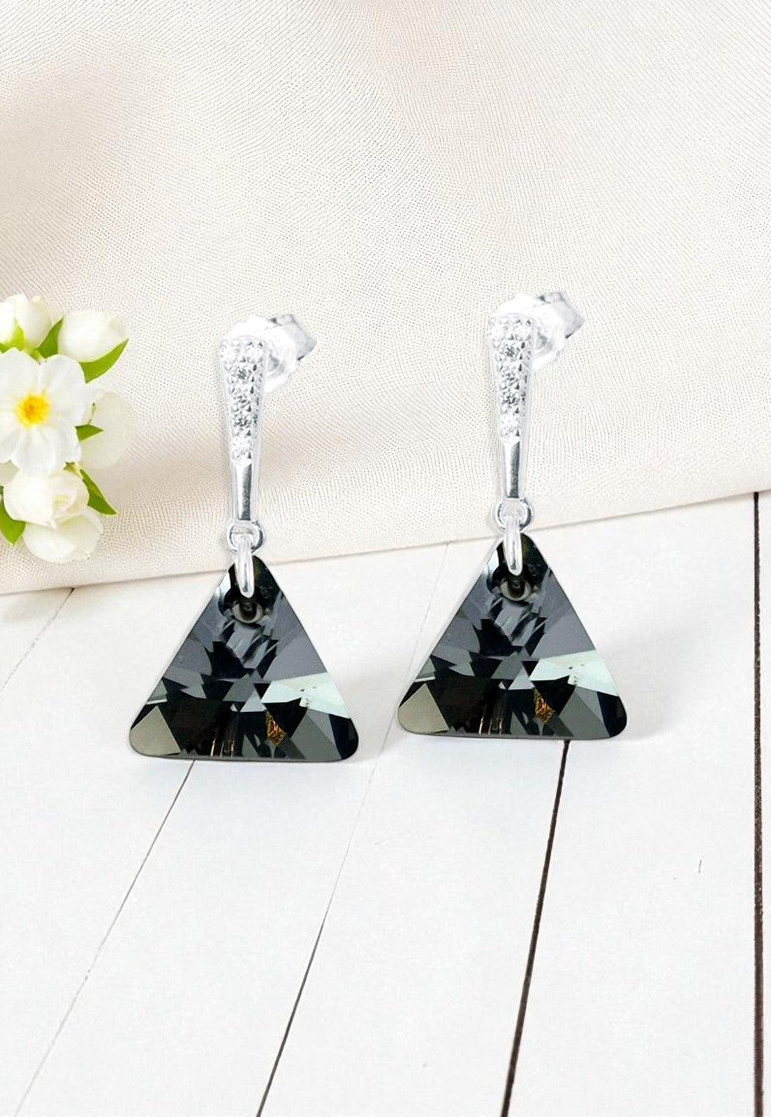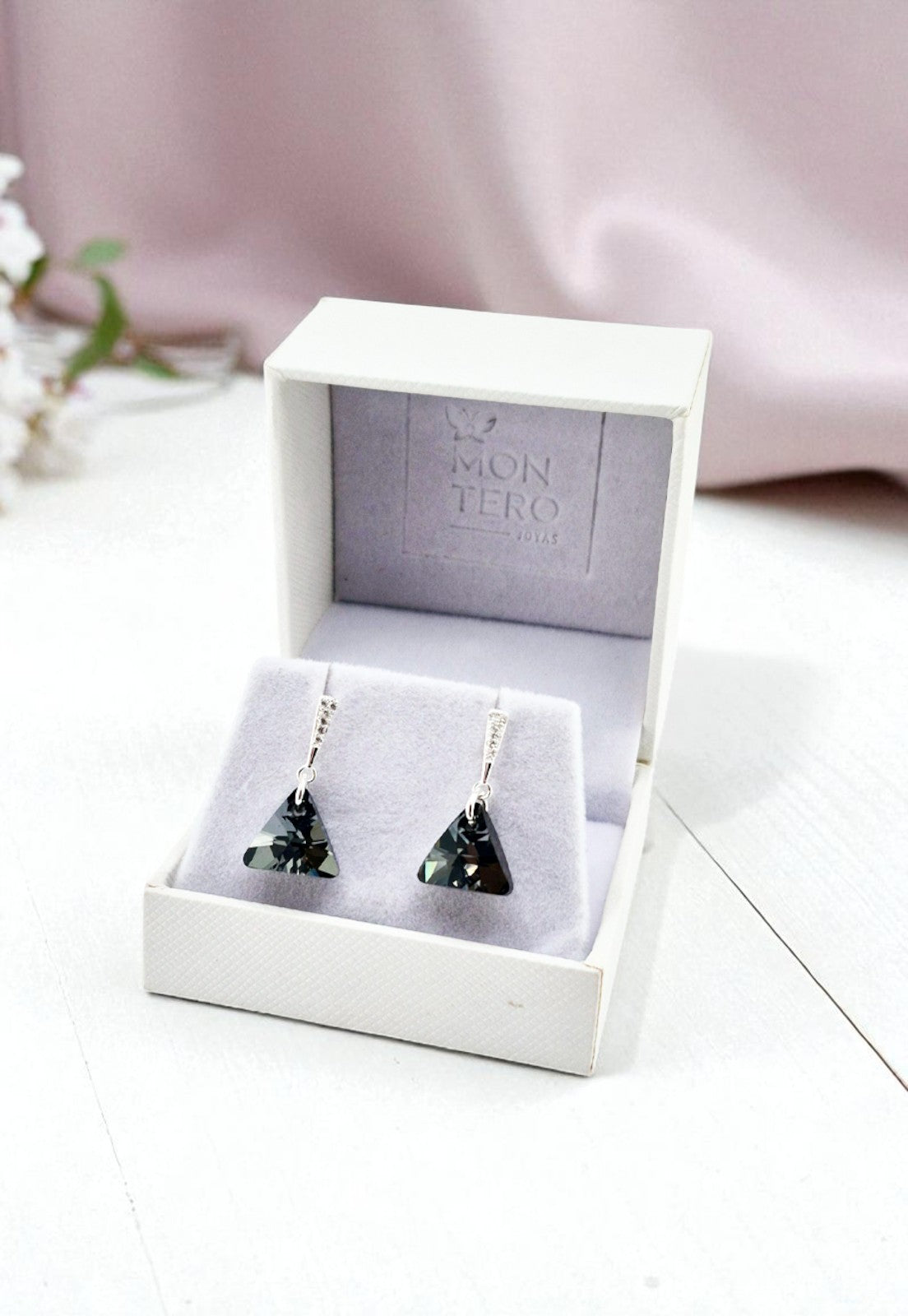 Aros Trinidad Plata Italiana 925 Con Cristales Genuinos Silver Night