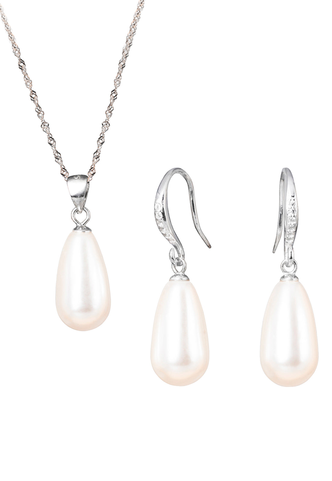 Collar + Aros Conjunto Plata 925 Moscu Perla Organica Cream