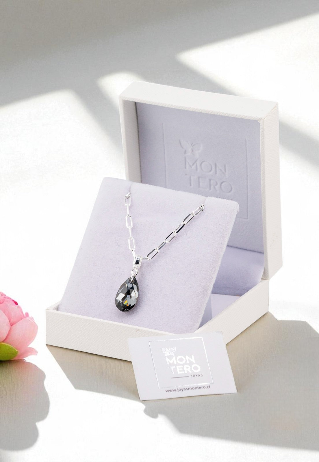 Collar Chiara Palermo Baño Oro Blanco Cristal Genuino Silver Night