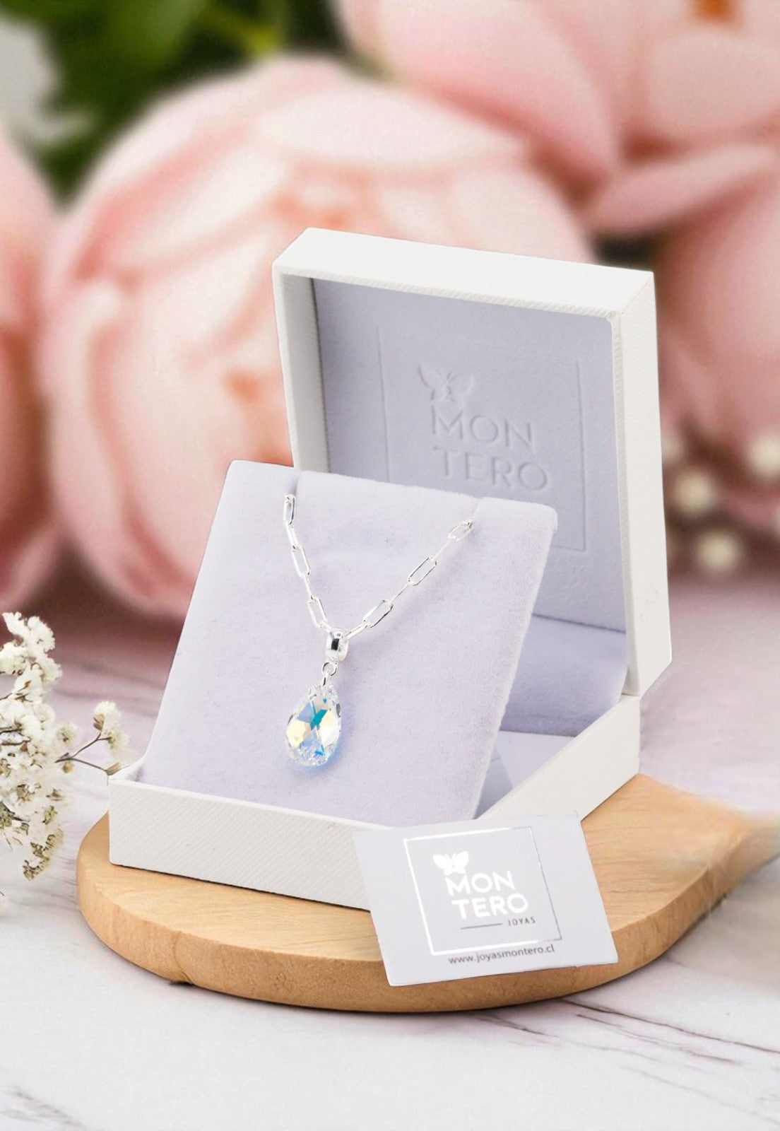 Collar Chiara Palermo Baño Oro Blanco Cristal Genuino Aurora Boreal
