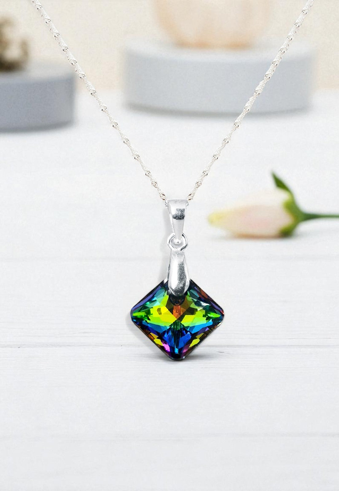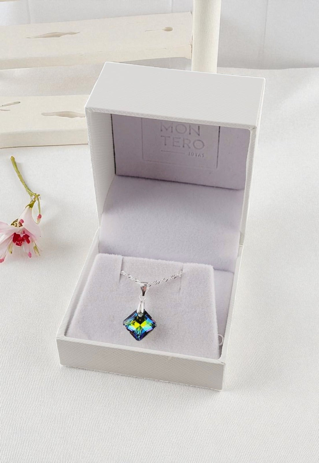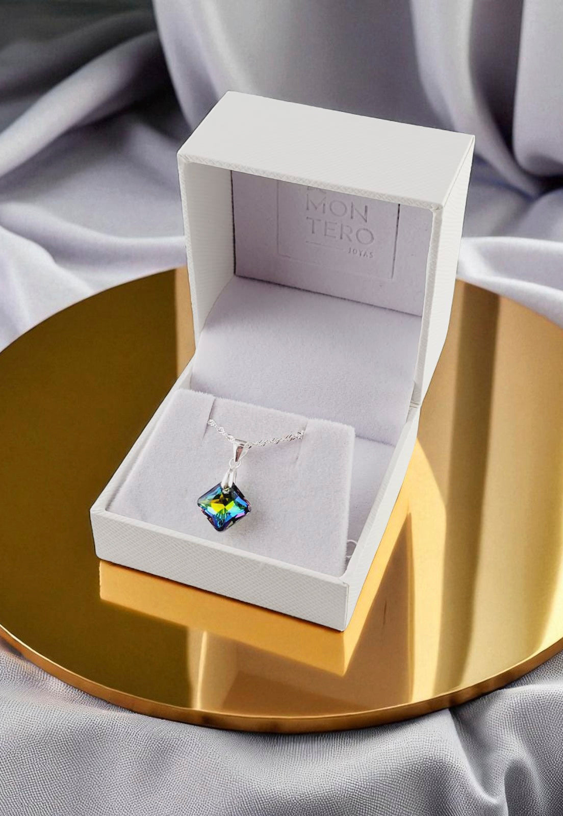 Collar Cristina Plata Italiana 925 Cristal Genuino Vitral Medium