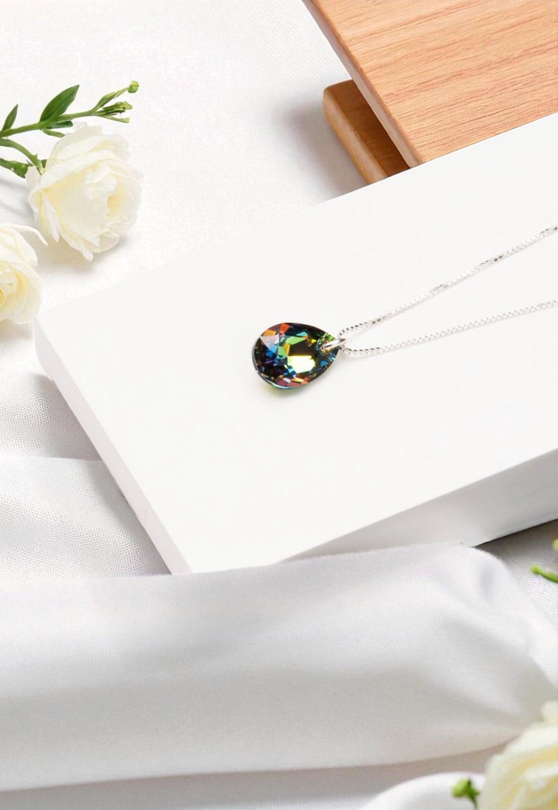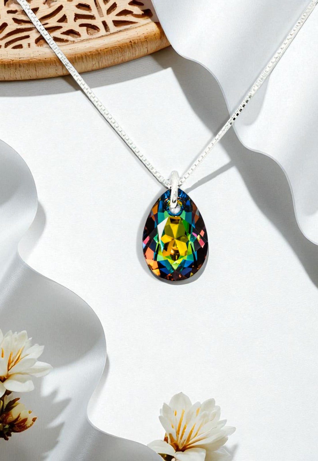 Collar Gota de Luz Plata 925 Cristal Genuino Vitral Medium