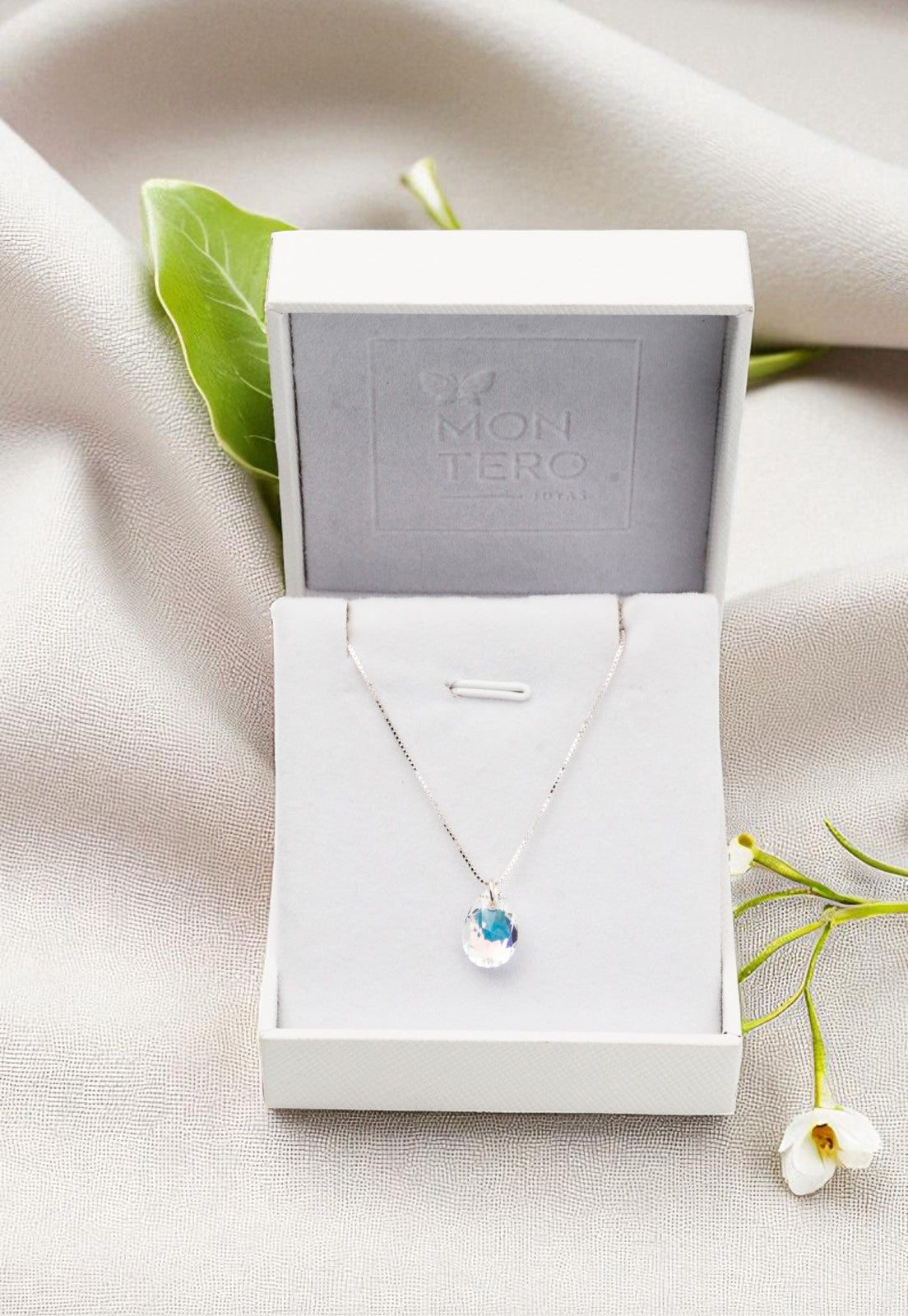 Collar Gota de Luz Plata 925 Cristal Genuino Aurora Boreal