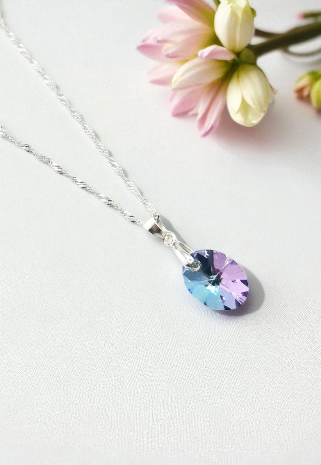 Collar Praga Plata 925 Cristal Genuino Vitral Light