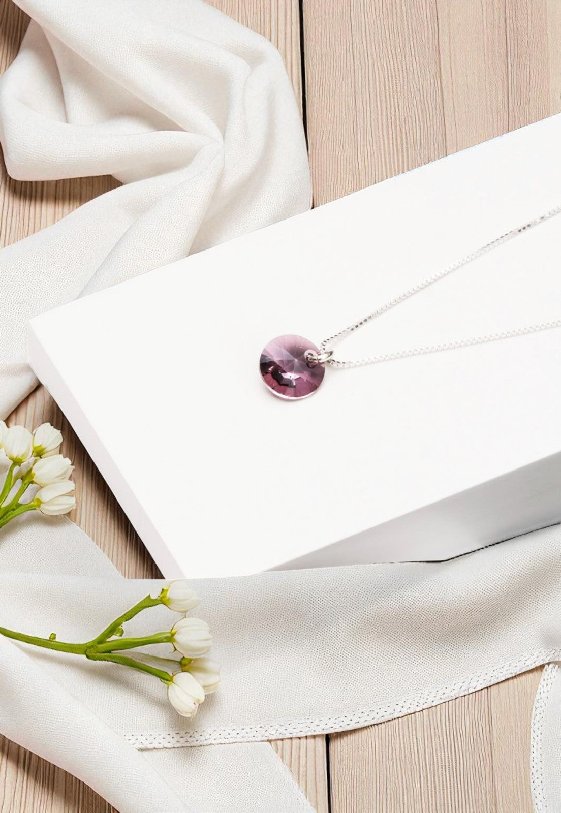 Collar Punto de Luz Plata 925 Cristal Genuino Antique Pink