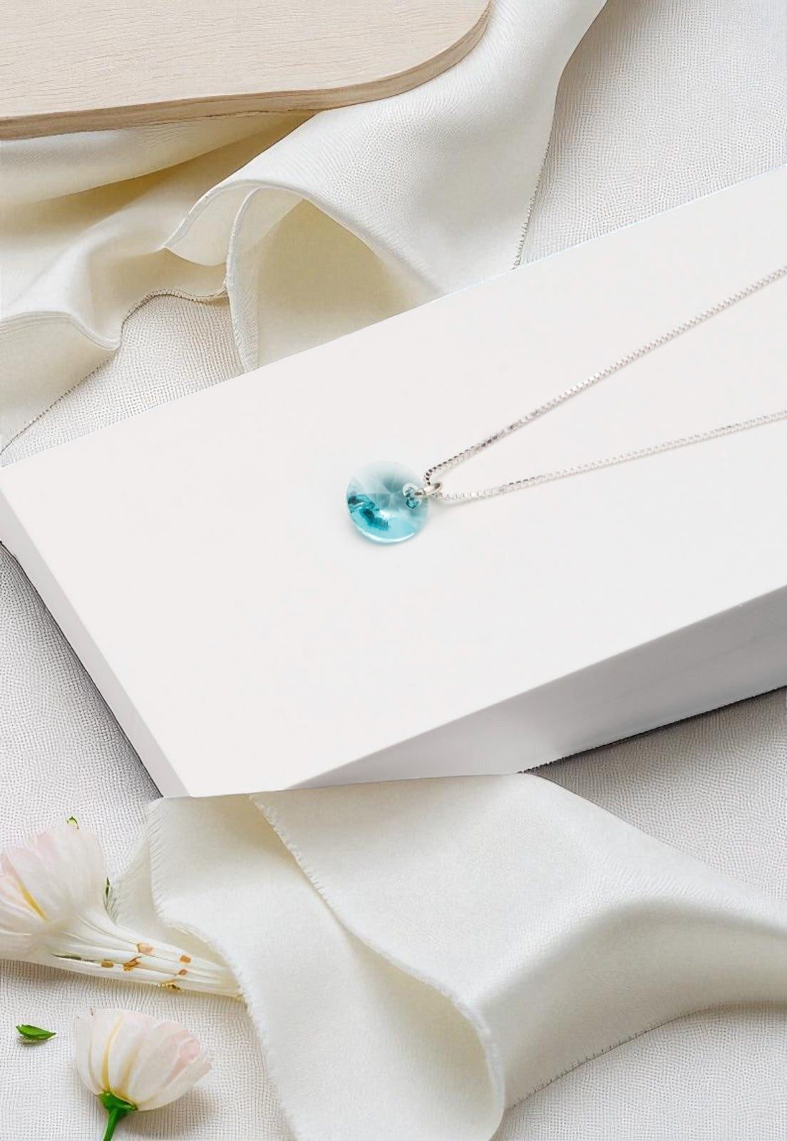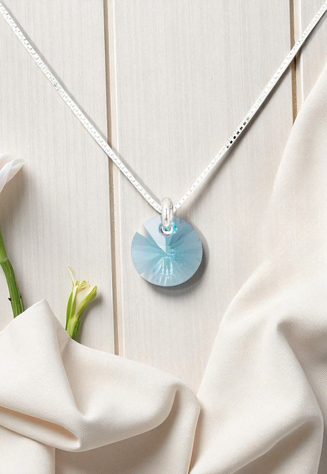 Collar Punto de Luz Plata 925 Cristal Genuino Turquesa