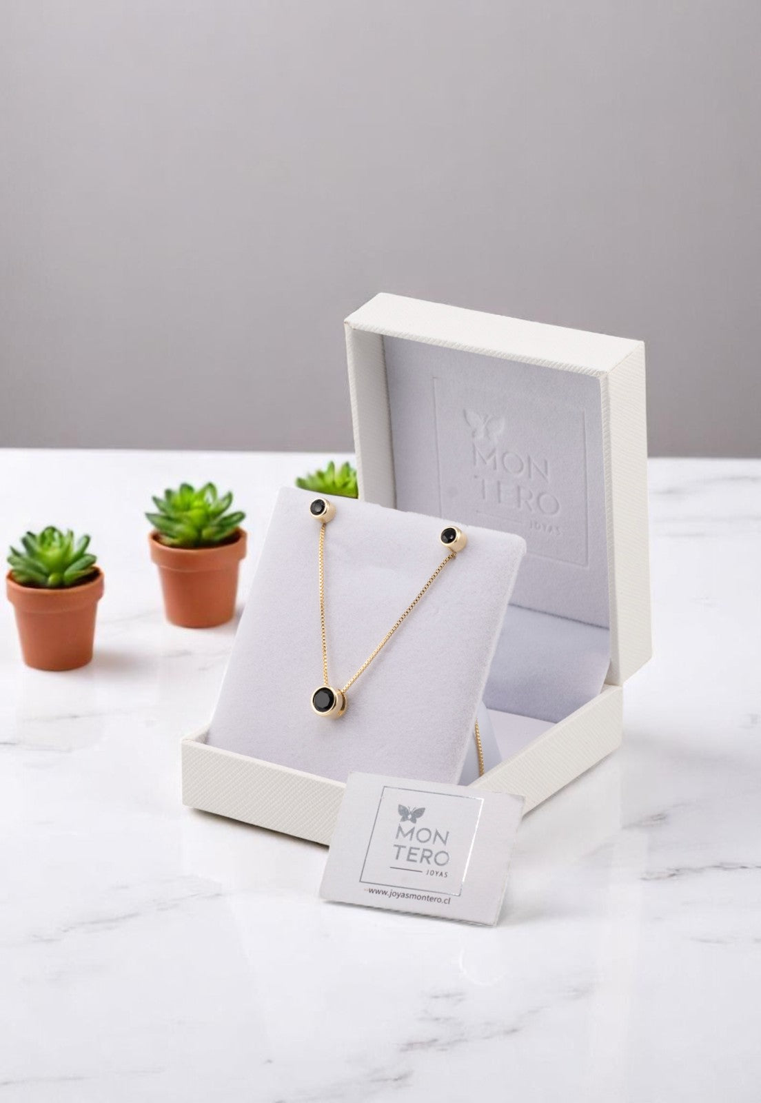 Conjunto Luciana Black Gold Baño de Oro 24k Circon Negro