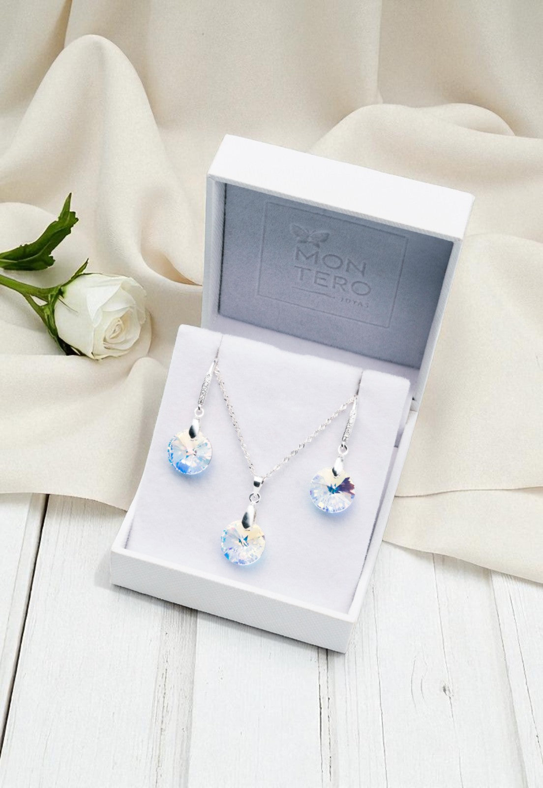 Conjunto Madrid Plata 925 Cristal Genuino Aurora Boreal