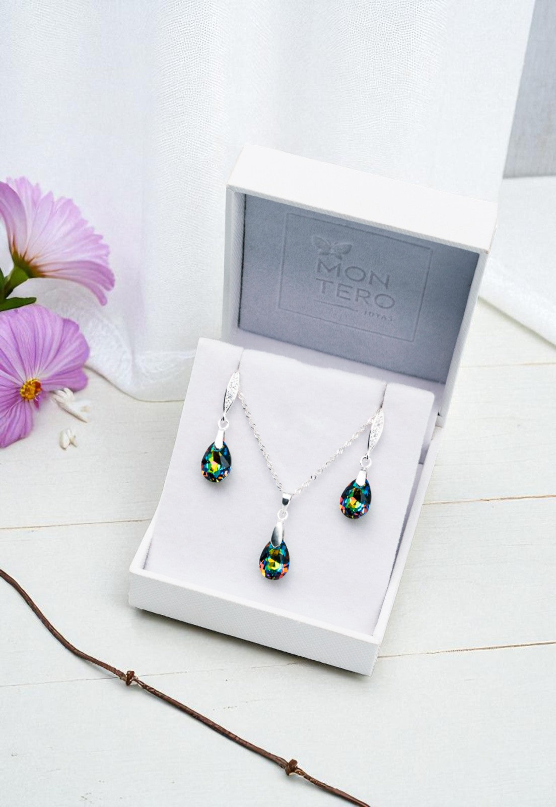 Conjunto Milan Plata 925 Cristal Genuino Vitral Medium