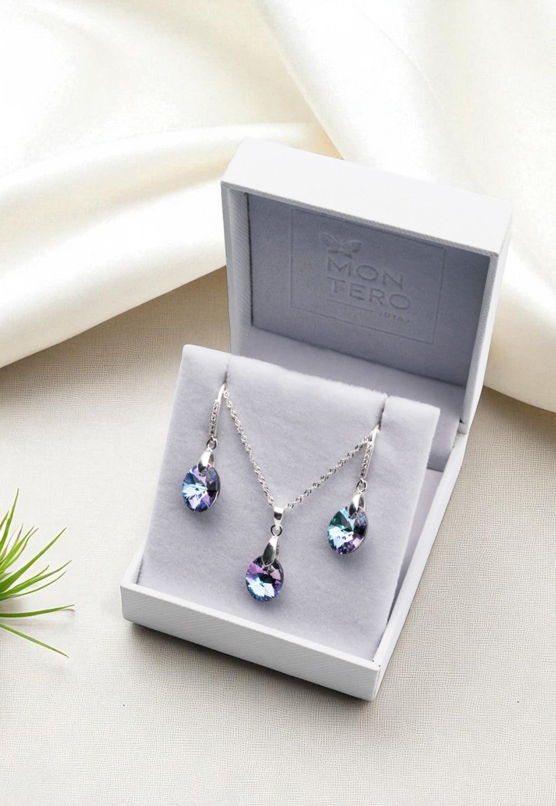 Conjunto Praga Plata 925 Cristal Genuino Vitral Light