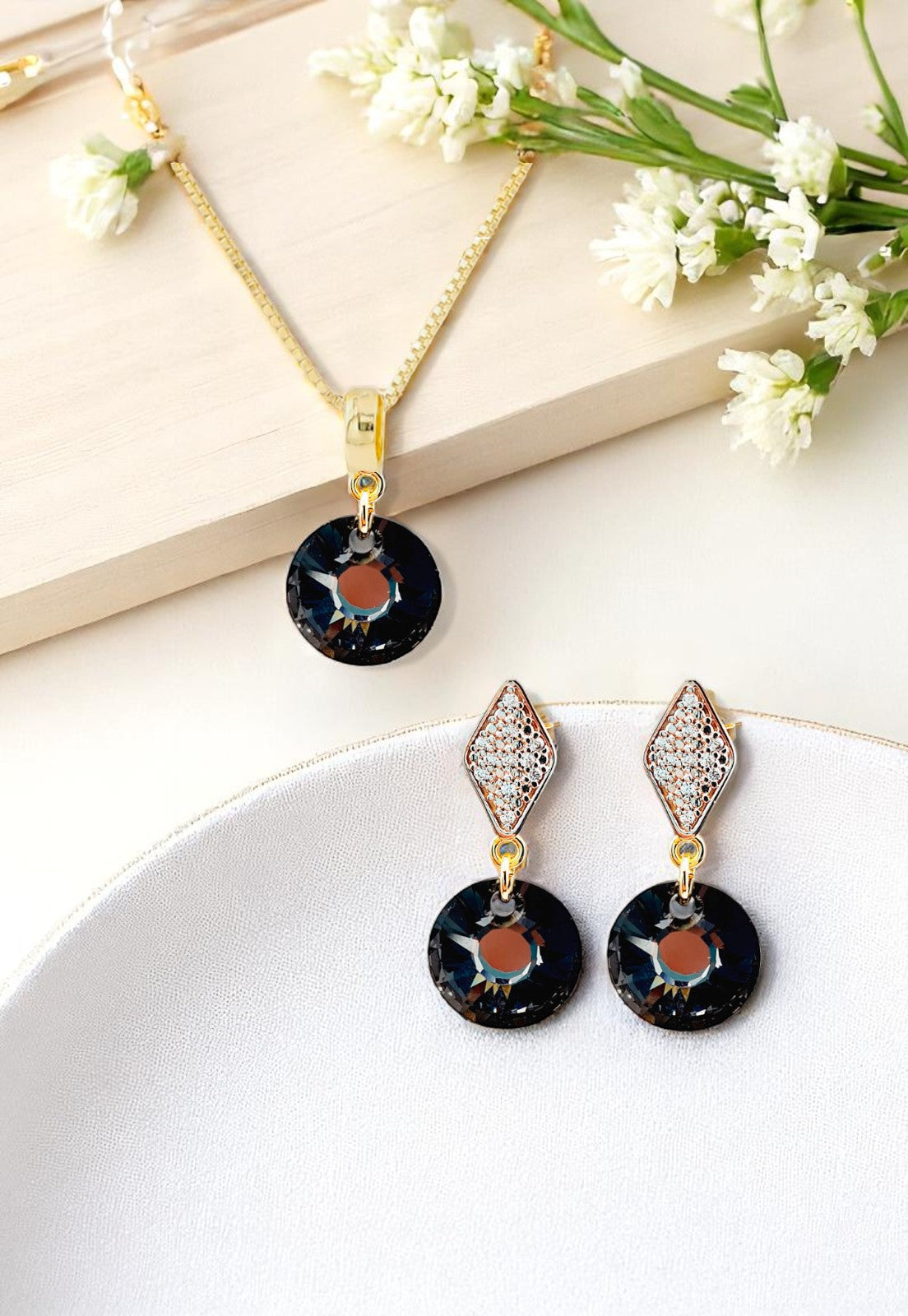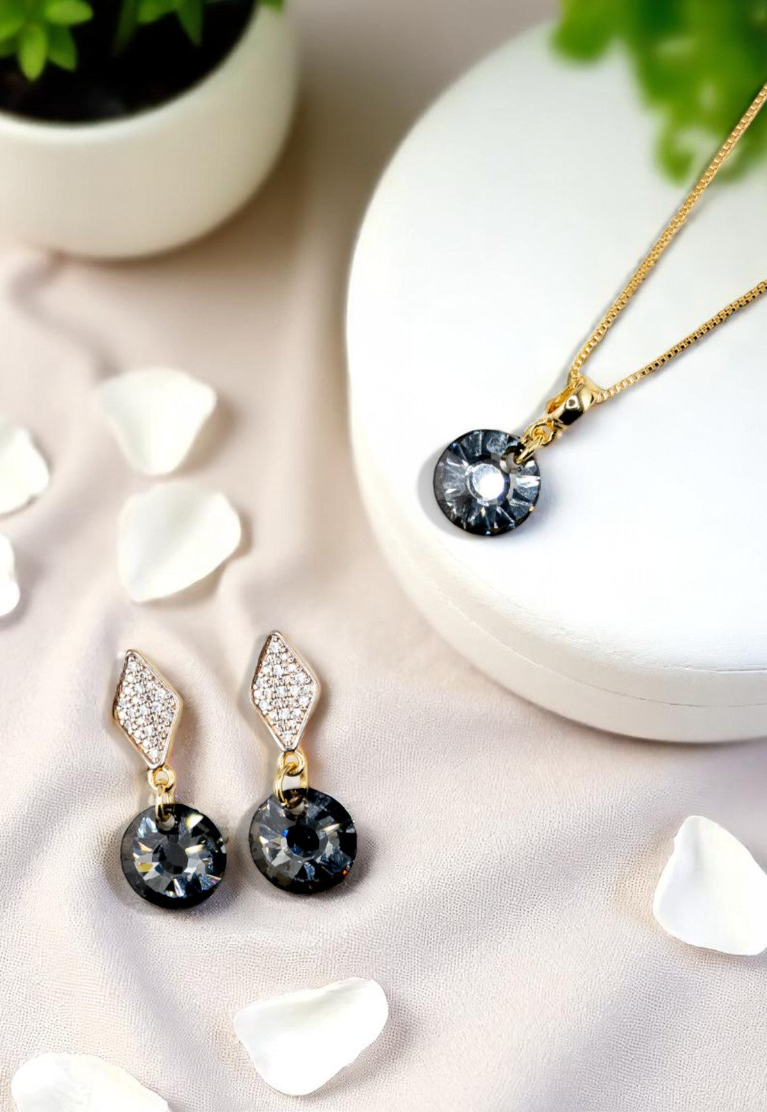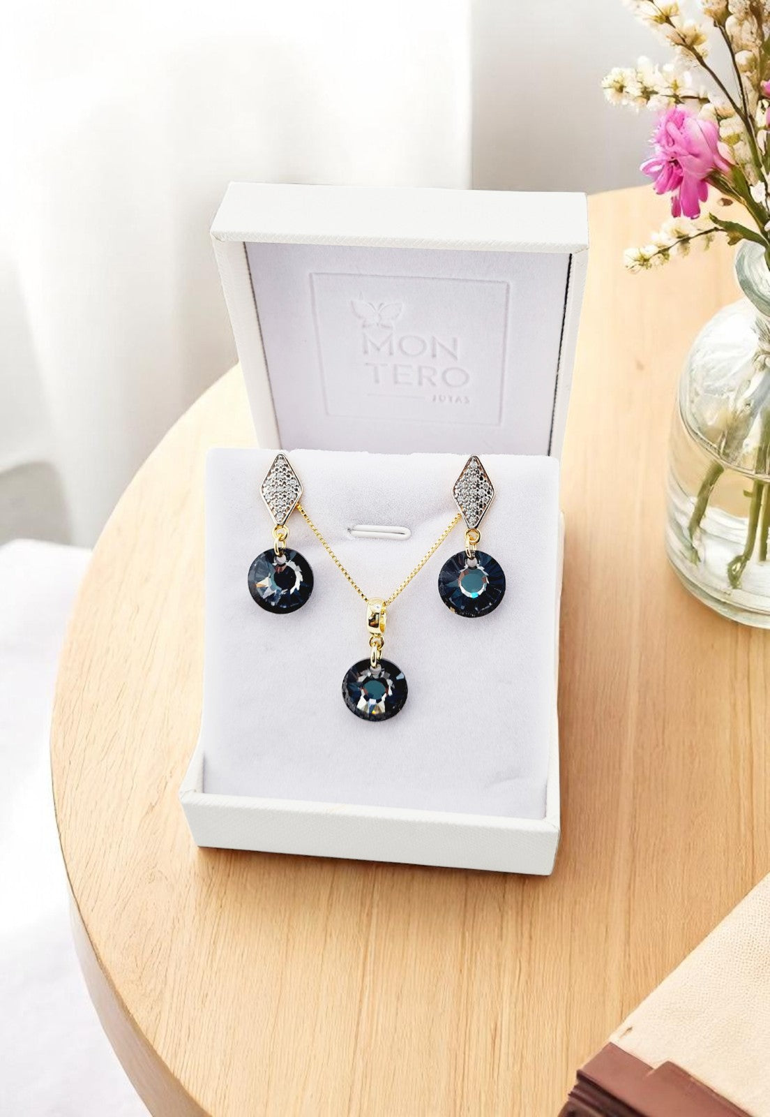 Conjuto Enigma Gold 24K Cristal Genuino Silver Night