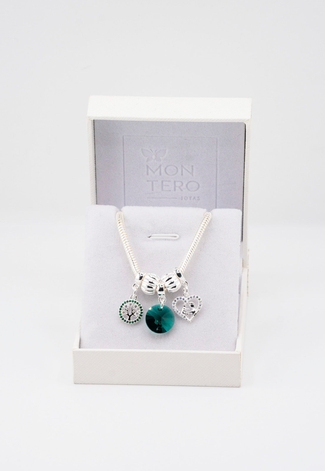 Pulsera Colomba Con Baño de Oro Blanco y Cristales Genuinos Emerald